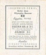 The Aurelia set is titled "Unter dem Olympia Banner " (Under the Olympic banner) and the album "Staats Wappen und Flaggen" (National arms and flags). The album is divided into two parts, countries competing in the 1936 Olympic games and countries not competing. Presumably some countries changed their mind about participating after the set had been prepared as some cards which it would appear from the numbering should be among the non-participants have to be stuck in the album for the set in the participants section. It is not clear why an album about the Olympic games should contain countries not competing.