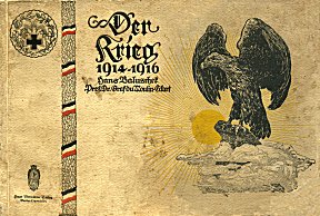 The title already indicates that the album is somewhat unusual since the first world war lasted until 1918 (or 1919 depending on your point of view). A glance inside explains the title. The album was issued in 1915 at a time when things were looking good for the German army, and the author, Prof. Dr. Graf du Moulin-Eckart confidently expected the war to be over by 1916. The album was intended as an encouragement to the German army to finish the war quickly, and also to help the red cross who received one Mark from the five Mark selling price of each album. Yet curiously, rather than rousing patriotic pictures, the illustrations are decidedly anti-war. The album contains twelve large-sized (247mm x 170mm) pictures by Hans Baluschek showing the negative side of war. This includes pictures of frozen bodies on a snow-covered battle field, bodies lying around a destroyed church, a dead family lying outside its burning house, and red cross men collecting dead and wounded after a battle, as well as a picture of Christmas 1914 with a Christmas tree in the trenches and bodies hanging on barbed wire. The idea was apparently that the army would be encouraged to get the war over with as quickly as possible once it was aware of the negative side of it.