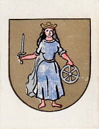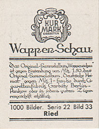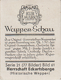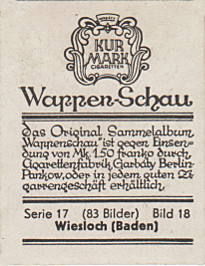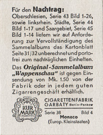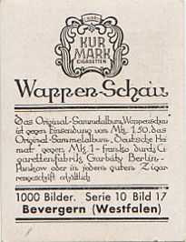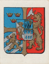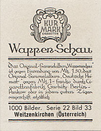 The set illustrates coats of arms of towns and countries. The set is divided into 45 sub-series with various numbers of cards. The backs of some cards indicate that the set contains 1000 cards. Adding up the number of cards given for each series gives a total of 1049 cards. There are many variations.