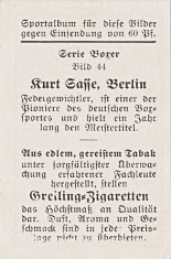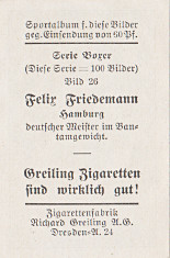 The first back illustrated indicated that the Boxer series comprises 100 cards (Diese Serie = 100 Bilder). The second back gives no indication of the number of cards. 57 Cards appear to be known.