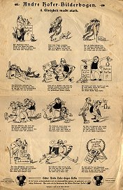 Andre Hofer was a coffee company which manufactured "Feigenkaffee" (fig coffee). I found these picture sheets on a flea market. The originals are about 30cm x 45cm. I have no idea how many of them there were or when they were issued but I saw about ten different ones. They were among a load of "Münchner Bilderbogen" and if they were all collected at the same time that would make the date of issue probably late 1800s.