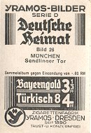 According to the description, card 26 illustrated above shows the Sendlinger Tor in Munich. In fact the card shows the Isar Tor. For comparison, here is the real Sendlinger Tor. |