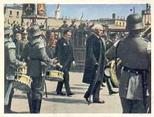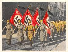 After world war 1, Germany was forced to make crippling reparations which ruined the economy. Large amounts of German territory were taken away and the size of the German armed forces was restricted by the treaty of Versailles which Germany was forced to sign. It was Hitler's stated policy to free Germany from the treaty of Versailles and reunite greater Germany, an aim which met with much support atthe time. This set details Hitler's rise to power